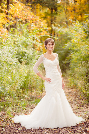 Is it just us or does this strapless ball gown look even more amazing with the fall foliage in the background?